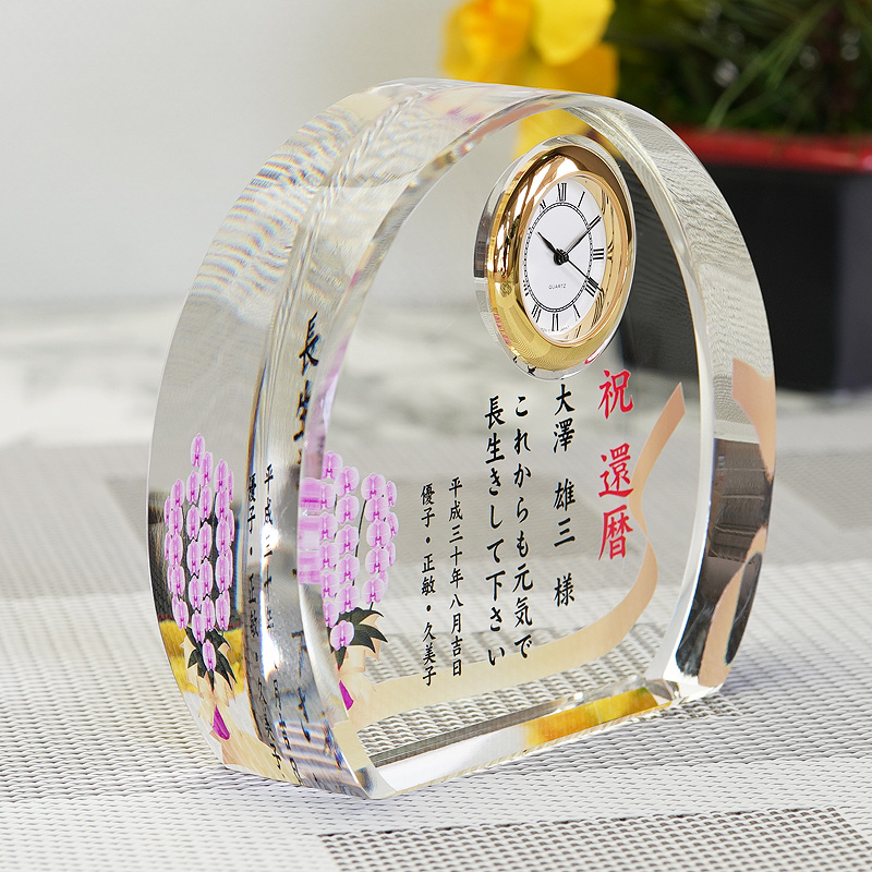 | 備考 | オリジナル彫刻で世界でひとつだけのオリジナルクリスタル置き時計が製作できます! セイコー製クウォーツ(品質保証付) 時計のフレームカラーは、金と銀がございますので ご指定下さい。 |