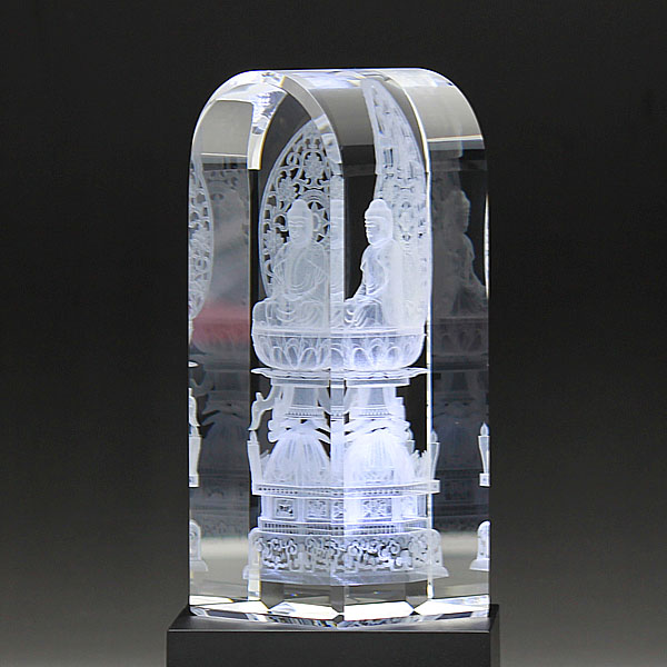 グラデーションの表現が可能でクリスタル内部に文字などが浮かぶ不思議で美しい加工方法です。