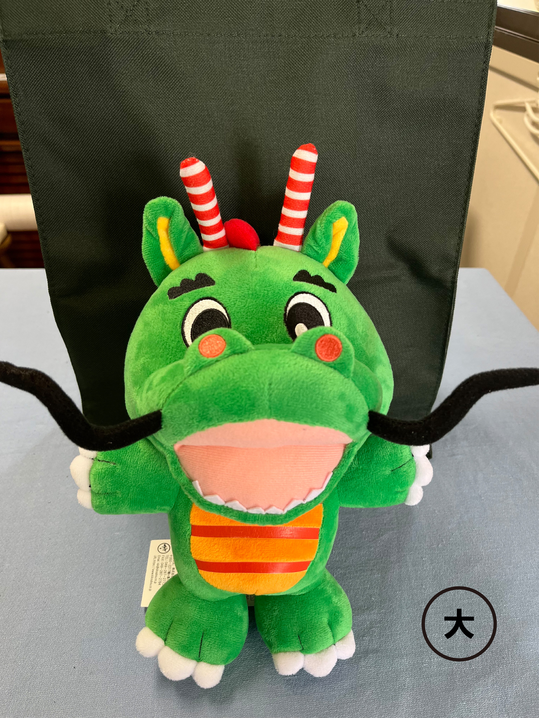 | 説明 | つるゴン着ぐるみをモデルにして、つるゴンぬいぐるみをつくりました。 鶴ヶ島市のゆるキャラは「つるゴン」です。彼は、幸せを運ぶ鶴と、脚折雨乞をイメージした龍をモチーフにしたキャラクターで、市民公募によって名付けられました. つるゴンは、鶴ヶ島市の様々なイベントや、市内のバス、ワゴン車、ランドセルカバー、給食の卵焼きの焼き印など、様々な場所で活躍しています. 2020年のゆるキャラグランプリでは全国3位を獲得したこともあります. サイズ 約 H28cm W22cm Φ11cm胴回り 企画:鶴ヶ島商工会 異業種交流会「スクラム21」 |