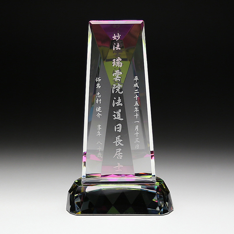グラデーションの表現が可能でクリスタル内部に文字などが浮かぶ不思議で美しい加工方法です。